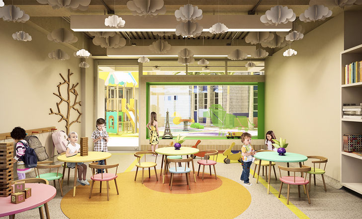 Los espacios de preescolar para el Liceo Campestre – Barranquilla, son la cuarta etapa de este conjunto arquitectónico, de gran importancia en el sector, ya que esta institución educativa busca una formación integral de los alumnos. El proyecto generar una atmosfera adecuada para el desarrollo de los infantes, la materialidad del edificio busca responder a las condiciones del lugar, con materiales a la vista como el ladrillo ocre y el concreto, adicional a eso para generar un ambiente dinámico se usa el color para acentuar elementos representativos del proyecto. La arquitectura contemplo elementos que funcionen para la exploración y disfrute de los niños y niñas, por ese motivo se contemplan nichos habitables, áreas exteriores con múltiples texturas y la inclusión de elementos representativos como animales en las ventanas, sistemas que incentivan el aprendizaje continuo de los usuarios. La relación con ambientes exteriores es fundamental en las primeras etapas del desarrollo cognitivo de los estudiantes, por ese motivo las aulas tienen relación visual con los patios de juego y esparcimiento, donde los niños en momentos de descanso se encuentran resguardados y protegidos dentro del complejo arquitectónico.